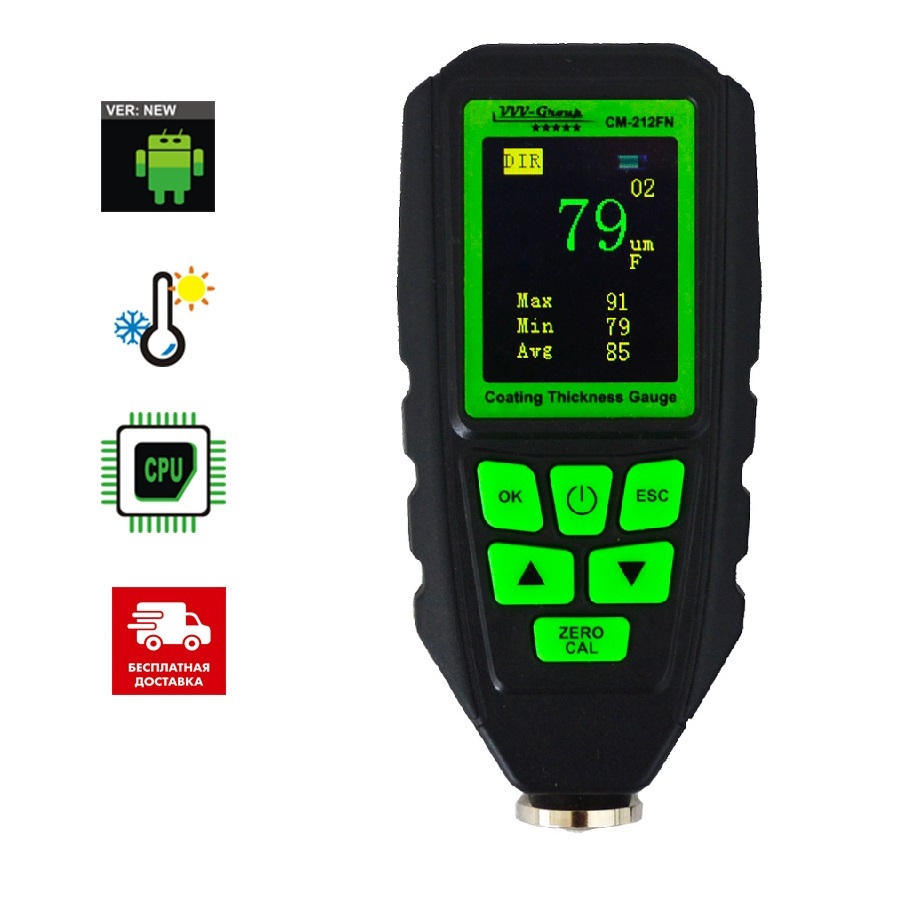 Толщиномер CM-212 FN VVV-Group – это новинка от популярного производителя толщиномеров, которая разработала специально для диагностики лакокрасочного покрытия на металлических основаниях. Прибор сочетает в себе все лучшие качества цифровых толщиномеров, точность и доступную цену. Поэтому его выбирают автодилеры, страховые эксперты и просто покупатели автомобилей, которые хотят быть уверены в своем выборе.